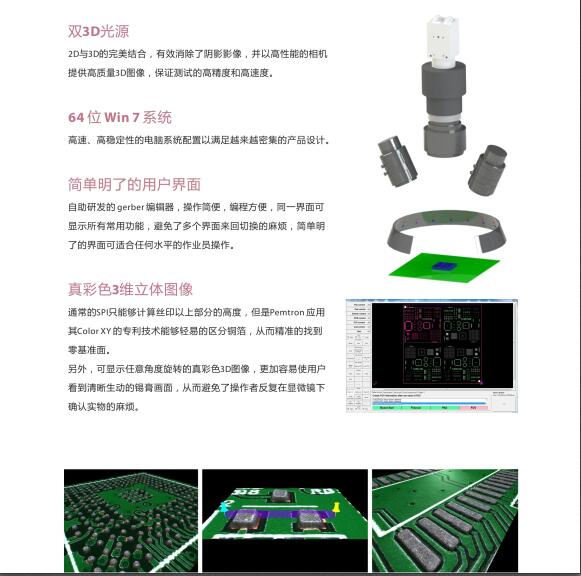奔創PEMTRN錫膏厚度檢測儀7700E在線3D SPI韓國進口設備,其性能優勢有,雙3?D光源,64位?Win7系統,真彩色3維立體圖像,簡単明了的用戶界面,實時質量監控與管控方案,奔創PEMTRN錫膏厚度檢測儀7700E在線3D SPI受到廣大客戶的青睞。