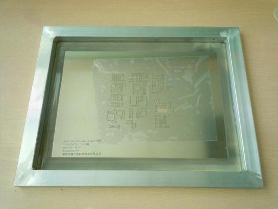 工藝流程:數據文件PCB→菲林制作→曝光→顯影→蝕刻→鋼片清洗→張網